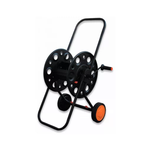 AG222 1/2 "100 m-es DURAMET tömlőkocsi A fém DURAMET kocsi akár 100 m-re is elbír egy 1/2"-os kerti tömlőt. Stabil és strapabíró talppal rendelkezik. Hosszú fogantyúval van ellátva, amely megkönnyíti a kocsi mozgatását anélkül, hogy le kellene hajolnia.