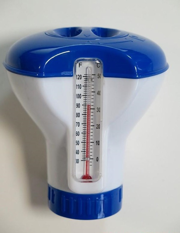 1 db úszó klórtabletta adagol hőmérővel 20 gr-os tablettákhoz.