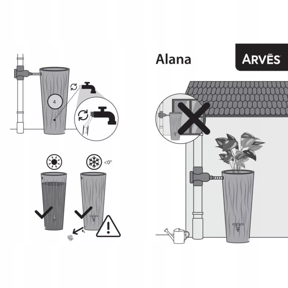 ALANA FLOWER 160L SZÜRKE ESŐVÍZTARTÁLY - elegáns és esztétikus megjelenés - ellenáll az UV sugárzásnak - tökéletes klasszikus és modern kerti elrendezésekhez - jó minőségű anyagokból készült, sok szezont kibír - nagyon környezetbarát, segíti a növények öntözését folyó víz használata nélkül A tartály tetején van egy mélyedés a virágok ültetésére 2 3/4 hüvelykes menetes furattal felszerelve a teljes ürítéshez és a csap elhelyezéséhez Az ARVES környezetvédelemmel foglalkozó termékcsaládjának ALANA FLOWER 160L ANTRACIT ESŐVÍZ TARTÁLYA nemcsak a víz összegyűjtését és tárolását teszi lehetővé, hanem kiváló módja annak, hogy megszüntesse a telkén a heves esőzések során fellépő áradásokat és tócsákat. A Prosperplast támogatja a környezetvédelmi tevékenységeket a gyártás során. A gyártáshoz újrahasznosított és újrahasznosítható anyagokat használ. Paraméterek: Tartály méretei kb.: 54,5 x 54,5 x 116 cm (Sz x Mé x Ma) Anyaga: Műanyag Szín: szürke Nettó tömeg: 11 kg Bruttó tömeg: 13 kg Űrtartalom: 160L Cég: Prosperplast Modell: RALA160-S443 Vízszintjelző: Nem Mérete:(Hosszúság x Szélesség x Magasság) 54,5 x 54,5 x 116 cm