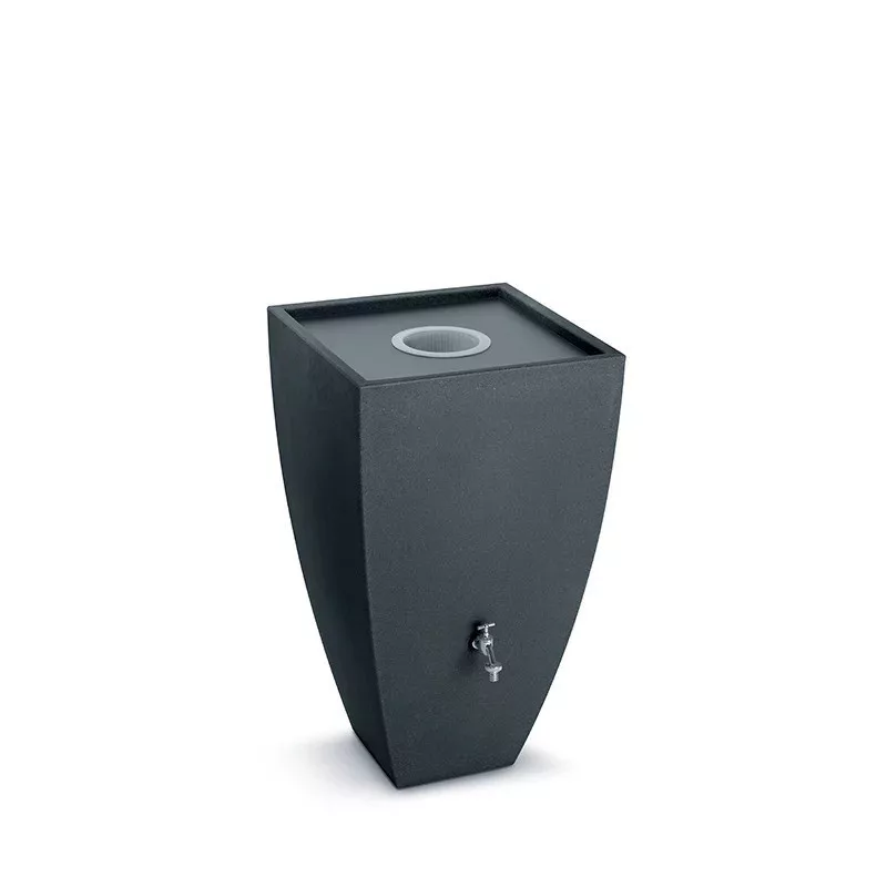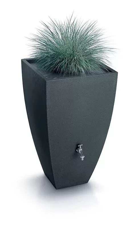 A kiváló minőségű alapanyagok felhasználásával ez a Modena esőhordó nagy merevséggel rendelkezik, és minden időjárási körülménynek ellenáll. Átlagos falvastagság: 6 mm A Modena esőhordó nagyon stílusos és modern megjelenésű. A Modenában van egy mélyedés a tetején, amibe virág, cserepes növény ültethető. Kompakt méreteinek köszönhetően ez az esőhordó ideális kis kertekbe vagy teraszokba. Szín: antracit A sárgaréz menetes csap nyílása a talajtól 34 cm magasságban van. Opcionálisan választhatja az automatikus töltőrendszert a 80-110 mm-es kerek lefolyókhoz, vagy a quatro-t a 70-100 mm-es négyzet alakú lefolyókhoz. Kiegészítő csatlakozás a hordó ürítéséhez a fagyos időszak előtt az esőhordó hátulján. UV és időjárásálló Űrtartalom: 200L Mérete:(Hosszúság x Szélesség x Magasság) 57,5 x 57,5 x 102,2 cm
