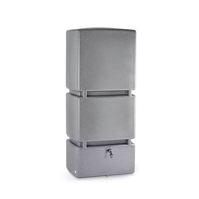 Jumbo tartály kiváló minőségű polietilénből. Van egy ¾" átmérőjű lyuk belső menettel az esővíz összegyűjtésére. A tartály elülső falán található. A kényelmes vízgyűjtés érdekében (pl. öntözőkanna feltöltéséhez) csap helyezhető bele. Vannak ¾" belső menetek az oldalfalakon, amelyek egy szivattyú csatlakoztatására vagy több tartály csatlakoztatására szolgálnak tartalmaz egy fém szöget rögzítő csavarokkal, amelyekkel a tartályt a falhoz rögzítik. Ez megakadályozza a tartály felborulását erős széllökések esetén. A tartály fel van szerelve egy felső nyílással egy ereszcsatorna rögzítésére és négy menetes lyukkal egy csaphoz, vagy egy gyorscsatlakozóval a kerti tömlő felszereléséhez. Egyedi dizájn Könnyen tisztán tartható További kiegészítők (csap, vízgyűjtő stb.) felár ellenében kaphatók a Waterform készletben Ellenáll az időjárási viszonyoknak Felső méret - 80 x 60 cm Magasság - 180 cm Űrtartalom - 800 l Szín: gránit zúzalék Mérete:(Hosszúság x Szélesség x Magasság) 60 x 80 x 180 cm