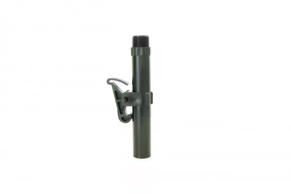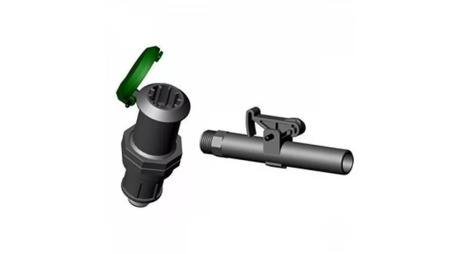 A kulcs vastag, erős műanyag anyagú, oldalán rögzítőkampóval, végén 3/4col KM csatlakozással.