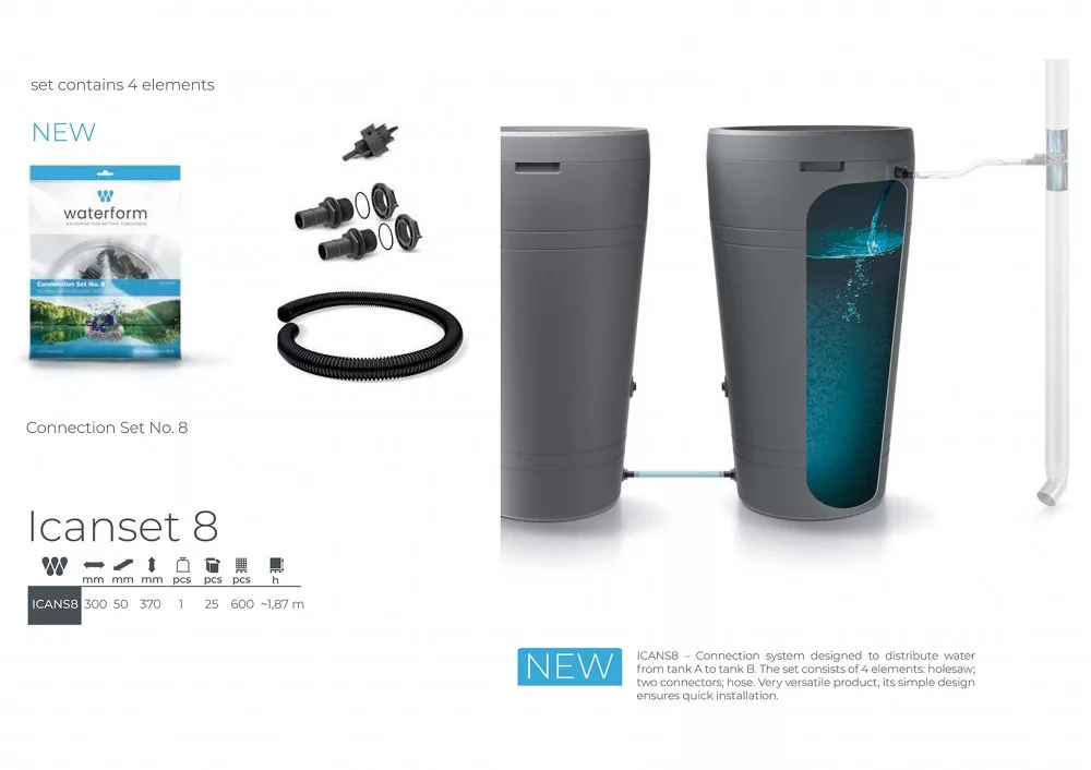 A készlettel összeköthető 2 esővízgyűjtő hordó (víz mozgatása A hordóból B hordóba). A készlet 4 elemet tartalmaz: fúrófej, 2 csatlakozó, összekötő tömlő. Univerzális termék, amely egyszerű kialakításának köszönhetően könnyen üzembe helyezhető.