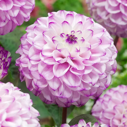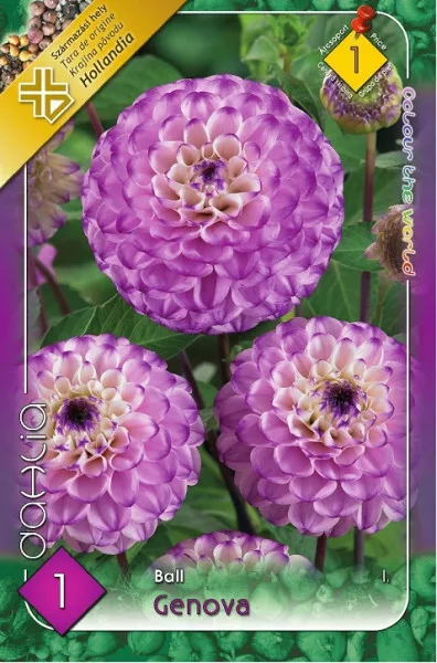 A Dahlia 'Genova' a Ball (gömb) típusú dáliák egyik legnépszerűbb képviselője, köszönhetően tökéletesen rendezett, befelé forduló szirmainak. A virágok színe a lágy levendulától a púderrózsaszínig terjed, ami elegáns megjelenést kölcsönöz a kertnek. A növény magassága elérheti a 90-100 cm-t, bokros habitusa miatt látványos térkitöltő.