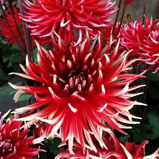 A Dahlia Cactus 'Friquolet' a kétszínű dáliák egyik ékköve, melynek intenzív piros színe és a szirmok végén található hófehér foltok látványos egységet alkotnak. A kaktuszdáliákra jellemzően a szirmok tűszerűek és kissé visszahajlóak, ami légies formát ad a nagyméretű virágfejeknek.Ültetése májusban esedékes, amikor a talaj már tartósan felmelegedett. A gumókat 10-15 cm mélyre helyezzük napos, szélvédett fekvésbe. A dália szereti a humuszos, tápanyagdús kerti földet, ezért ültetéskor érdemes komposztot keverni a talajhoz.Gondozási útmutató:* Kitettség: Teljes napfény (napi 6-8 óra).* Talaj: Jó vízelvezetésű, tápanyagdús kerti talaj.* Öntözés: Rendszeres, kiegyensúlyozott vízellátást igényel.* Ápolás: Az elnyílt virágokat vágjuk le a folyamatos virágzásért.A növény bokros növekedésű, sötétzöld lombozata remek hátteret ad a piros-fehér virágoknak. A virágzás serkentése érdekében javasolt a bimbóképződés idején káliumdús tápoldatot használni. A 'Friquolet' kiválóan mutat vágott virágként is, vázában hosszú életű.Kártevők közül a levéltetvekre és a meztelencsigákra érdemes figyelni, különösen a hajtásnövekedés elején. A gombás betegségek elkerülése végett ügyeljünk a megfelelő tőtávolságra (kb. 50 cm). A növény hálája a gondoskodásért a végtelen virágtenger lesz.Teleltetése szükséges: október végén, az első fagyok után a gumókat ássuk ki, tisztítsuk meg, és száraz, fagymentes helyen tároljuk tavaszig. Fontos, hogy a tárolóhelyiség szellős legyen a rothadás megelőzése érdekében. A képen szereplő növény illusztráció, a valóságban az élőnövény a képtől eltérhet.