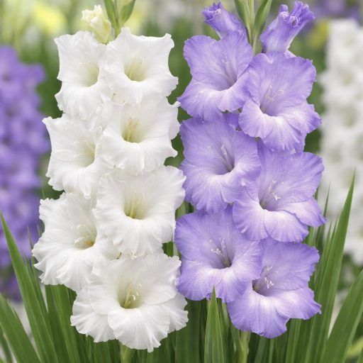 A Gladiolus Duo Blue & White válogatás a kertek egyik legkifinomultabb struktúranövénye, melynek 10 darabos kiszerelése lehetővé teszi egy komplett virágzó fal létrehozását az ágyásban. A kék és fehér fajták színharmóniája hűsítő és nyugodt hangulatot áraszt a forró nyári hónapokban júliustól októberig a sikerért.