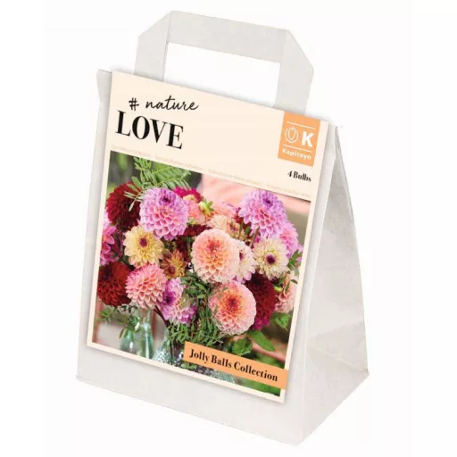 A 'Jolly Balls Collection' a Nature Love sorozat egyik legvidámabb dáliaválogatása, melyet a szabályos gömb és pompon formák kedvelőinek állítottak össze. A kollekció több különböző színű fajtát tartalmaz, melyek 5-8 cm átmérőjű, tömött gömbvirágai izgalmas geometriai látványt nyújtanak.Telepítése április végétől május közepéig javasolt a kertbe, amikor a talaj hőmérséklete már tartósan 10 fok felett van az ültetéshez. A gumókat 10-12 cm mélyre helyezzük el napos fekvésbe, biztosítva a 40-50 cm-es tőtávolságot a dús bokrosodáshoz. A talaj legyen humuszos és jó vízelvezetésű.Gondozási és telepítési tanácsok:- Fényigény: Teljes napfény szükséges az intenzív színek és a tökéletes gömbforma kialakulásához.- Vízigény: Kiegyenlített, rendszeres öntözést hálálnak meg a virágzási szezon csúcsán a hőségben.- Tápanyag: Kétheti rendszerességgel javasolt komplex műtrágya vagy dália tápoldat használata az ágyásban.- Ápolás: Az elnyílt virágfejek rendszeres eltávolítása serkenti az újabb bimbók képződését az őszig.A kollekció növényei középmagasra, kb. 80-90 cm-re nőnek meg, habitusuk sűrű és bokros az egész szezonban. A válogatás tagjai kiválóan mutatnak vágott virágként is, tartós és különleges asztali csokrokat készíthetünk belőlük a nyár folyamán.Növényvédelmi szempontból a pompon dáliák viszonylag ellenállóak, de a levéltetvek ellen érdemes védekezni a hajtásnövekedés kezdetén. A gombás betegségek megelőzhetőek szellős ültetéssel és a levelek szárazon tartásával az öntözés során. A holland rizómák ereje biztosítja a növények vitalitását.Teleltetés: Az első őszi fagyok után a gumókat fel kell szedni a földből a teleltetési időszakra. Tisztítás után fagymentes, hűvös és száraz helyen tároljuk őket tavaszig szellős ládákban az épségük megőrzéséért. Megfelelő tárolással a Jolly Balls kollekció minden évben megújulva díszíti a kertet.Ez a válogatás ideális megoldás azoknak, akik szeretik a színes, gömb alakú virágok tömeges látványát az ágyásokban. A képen szereplő növény illusztráció, a valóságban az élőnövény a képtől eltérhet.