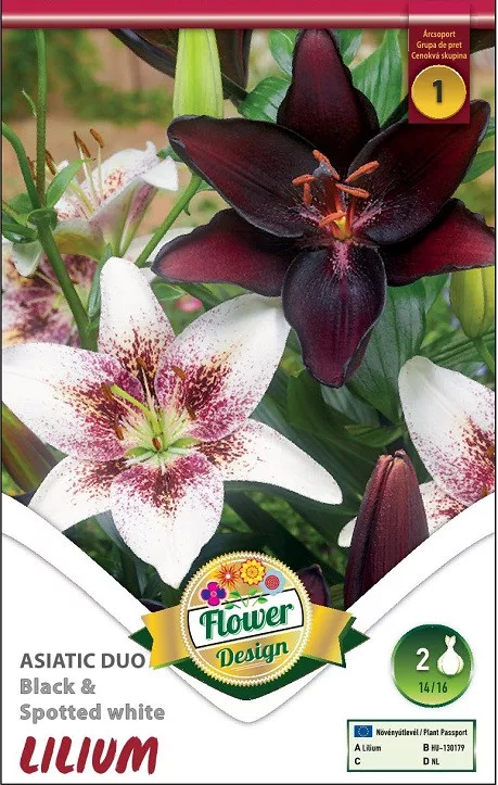 Liliom Ázsiai Duó Fekete és Pöttyös Fehér (Lilium duo Asiatic Black & Spotted White) - 2 db/csomag (LA)