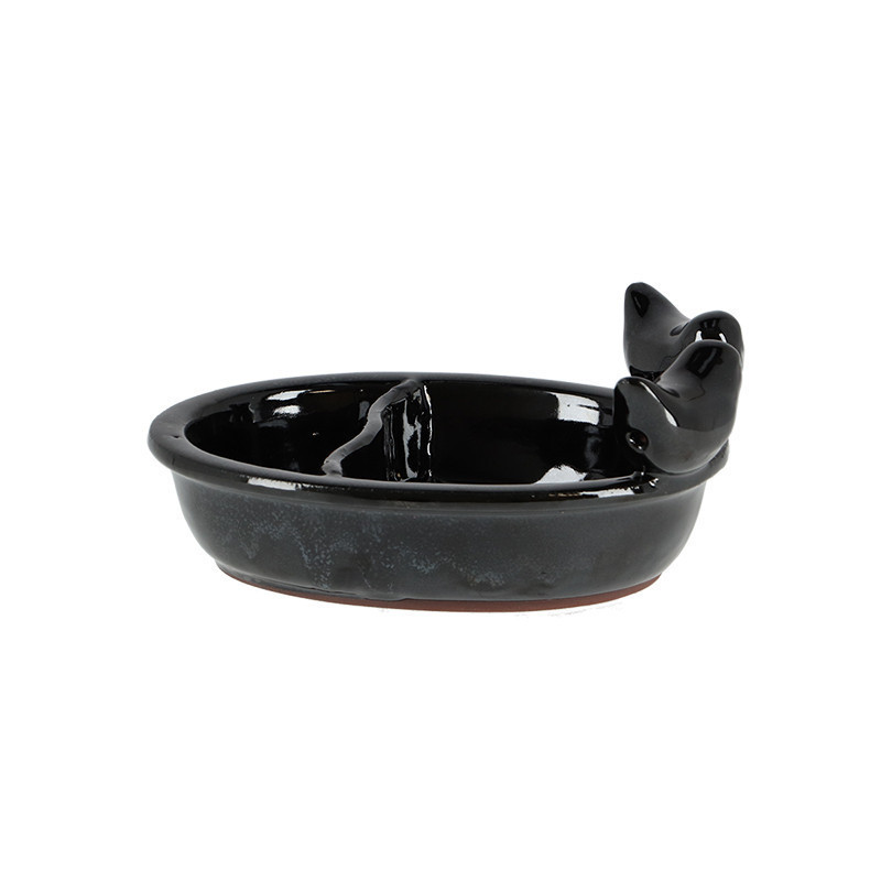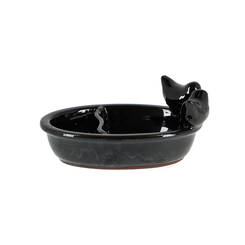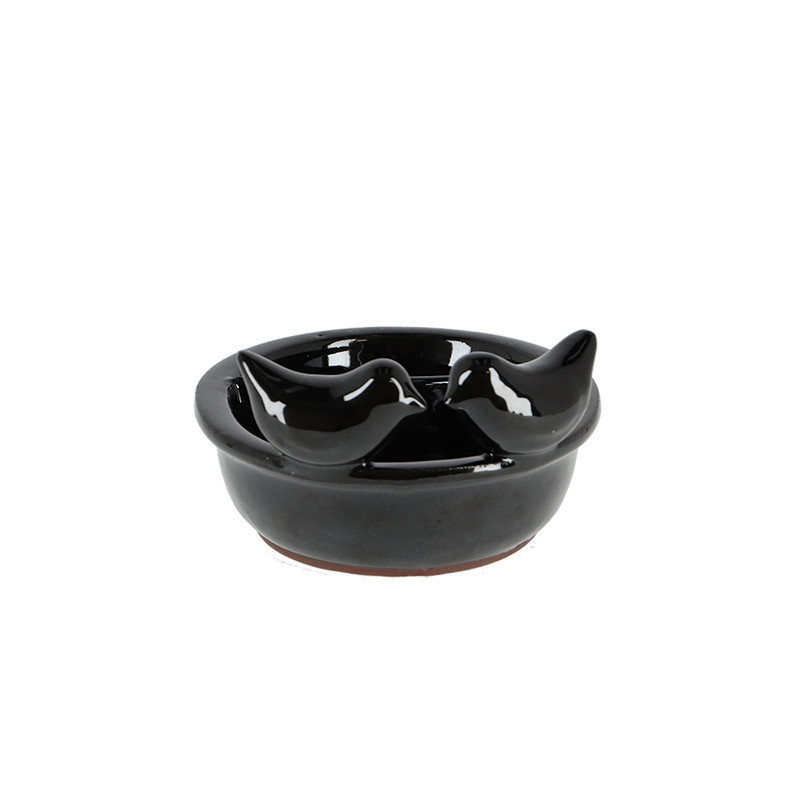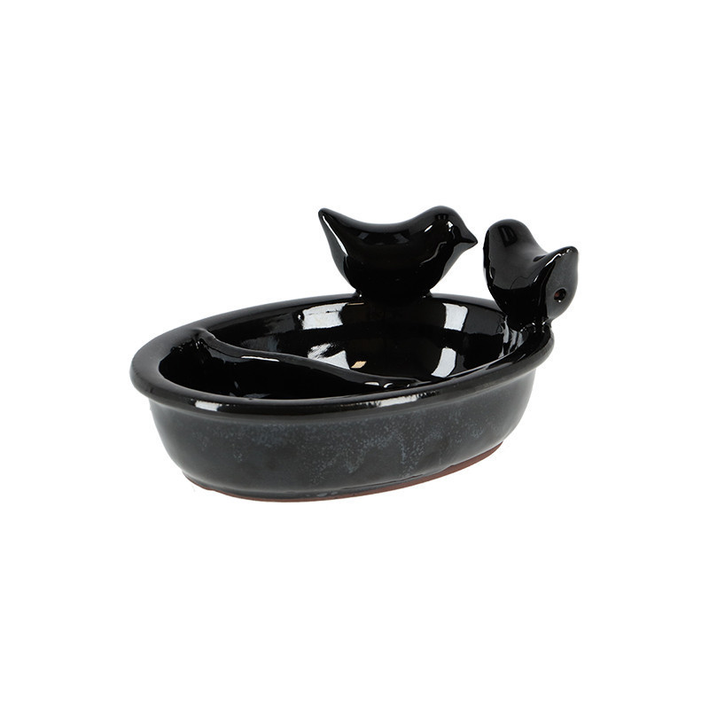 Fekete színű kerámia madárfürdető és madáretető tál. A madarakkal díszített tál két részre van osztva, így egyszerre gondoskodhatsz a kismadarak etetéséről valamint itató- vagy fürdővizükről. A sima felületnek köszönhetően egyszerűen tisztíthatod a tálat egy szivaccsal. Tippünk: Nyáron is gondoskodj rendszeresen a friss vízről! Helyezd ezt a dekoratív tálat központi helyre a kertben, és figyeld meg, hogyan fürdőznek a tarka tollú madarak a nagy melegben! Hideg időjárás esetén nem ajánlott a terméket a szabadban hagyni, mivel a fagy okozhat sérülést vagy repedést a kerámia felületén.