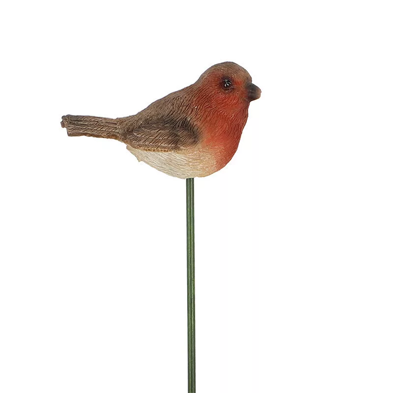 Leszúrható kismadár polyresin szobor, vörösbegy, kültéri és beltéri dekorációs kiegészítő