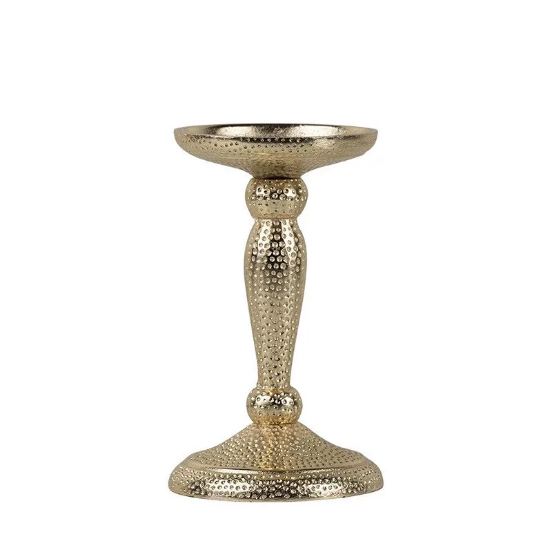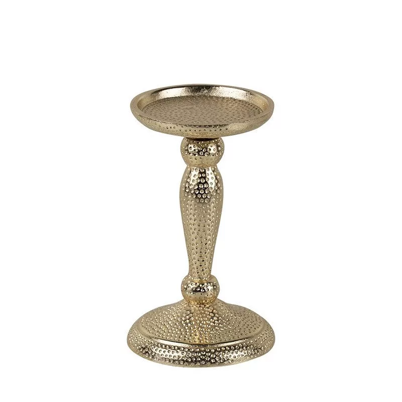 Nyomott mintás fém gyertyatartó, pezsgőarany színű, 17 cm
