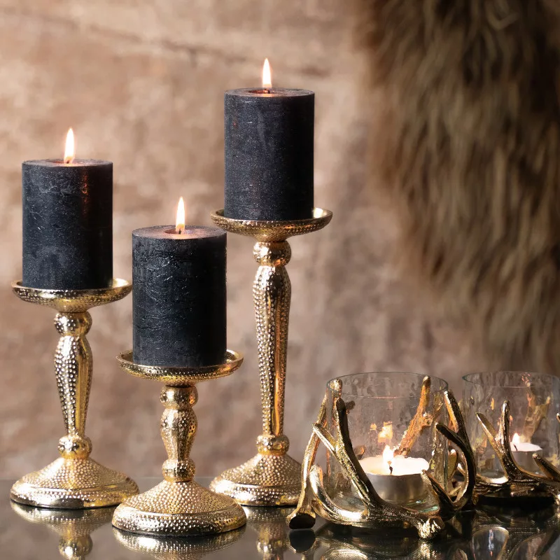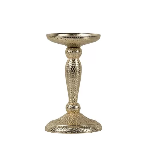 Pezsgőarany színű, nyomott mintás gyertyatartó, 17 cm magas. Varázsolj otthonos és meghitt hangulatot gyertyákkal! A fémből készült gyertyatartó aranyló fényével dekoratív lakáskiegészítő. Jól mutat rajta bármilyen gyertya vagy mécses. Ha kedveled a fényűző glamour lakberendezési stílust, ez egy különleges kiegészítő lesz otthonodban!