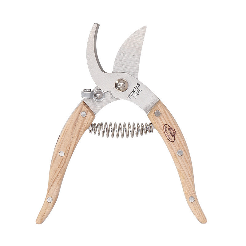 Rozsdamentes acél metszőolló szobanövényekhez, kőrisfa nyéllel, 17 cm