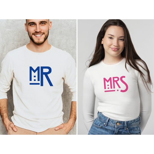 A „Mr. és Mrs.” páros hosszú ujjú pólószett modern, vidám ésszerethető. Fehér alap, kék és magenta színű felirattal. Kényelmes, rugalmasanyagból készült, így egész napos viseletre is ideális. Ajándéknak tökéletes.Rendelés előtt ellenőrizd a mérettáblázatot. Ha méret hiányzik, írj a webshop@sateam.hu-ra.
